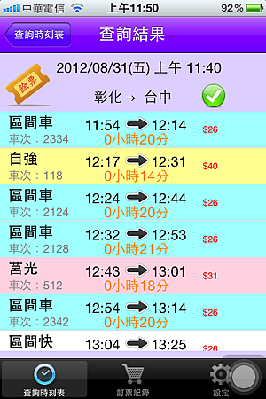 iPhone 4S【台鐵時刻查詢】 ─ App vs. 網頁版